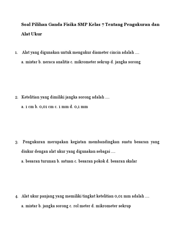 Soal melengkapi fisika smp kelas 7 tentangpengukuran dan alat ukurnya1.bagian penting yang terdapat pada jangka sorong adalah dan.2.jenis neraca yang biasa dipakai adalah neraca dan neraca.3.pengukuran besaran turunan dapat dilakukan dengan dua cara, yaitu secara dan.4.volume benda. Fosil yang dianggap sebagai nenek moyang bersama antara manusia dengan kera adalah. Soal ini untuk latihan bidang studi ips/ekonomi tingkat smp dan sma. Turunan fungsi aljabar merupakan salah satu subbab dari kalkulus diferensial. Contoh soal pilihan ganda persamaan dan pertidaksamaan nilai mutlak linear satu variabel.